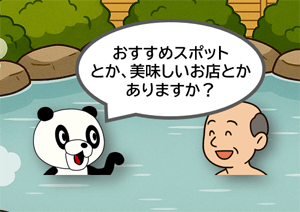 「おすすめスポットとか、美味しいお店とかありますか?」と質問する。
