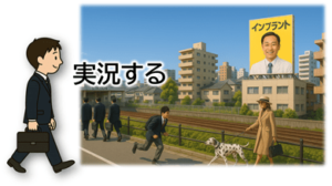 たとえば、通勤途中の風景を、アナウンサーのように実況する。