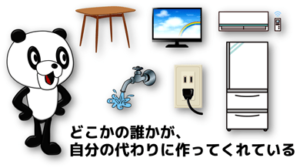 テーブルも、テレビも、エアコンも、冷蔵庫も、電気も、水道も、どこかの誰かが、自分の代わりに作ってくれている。
