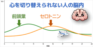 心を切り替えられない人の脳内は、四六時中、前頭葉とセロトニンが低空飛行をしている。