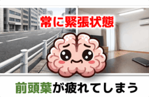 だから、脳は常に緊張状態で、前頭葉が疲れてしまう。