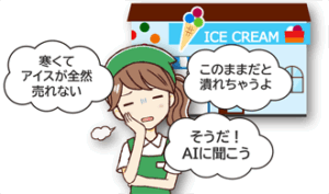 「寒くて、アイスが全然売れない。このままだと潰れちゃうよ。そうだ!AIに聞こう」