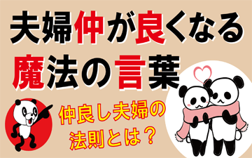 夫婦【仲良し夫婦の秘訣】夫婦仲が良くなる魔法の言葉この記事でお伝えしたいこと 夫婦仲が悪くなる原因 夫婦仲が良くなる魔法の言葉とは 今回は、「夫婦仲が良くなる魔法の言葉」をご紹介させていただきます。 すでに結婚している方も、まだこれからという方も、覚えてお...