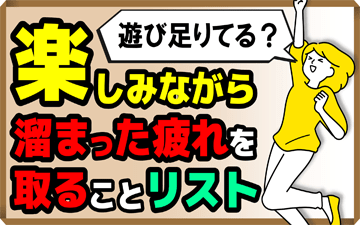 心【遊び足りてる?】楽しみながら「溜まった疲れ」を取ることリスト・しっかり寝たはずなのに、頭がボーッとする ・なんとなく体がダルい ・やる気が湧いてこない ・長い時間、集中できない ・イライラしやすい ・不安になりやすい これらはすべて、脳が疲れているサイン。 「あっ、それ私だ!...